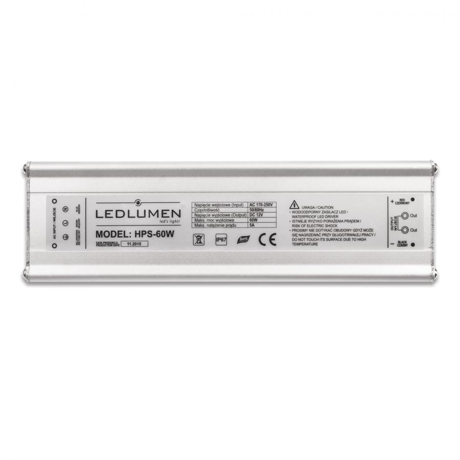 Wodoodporny instalacyjny zasilacz napięciowy LED 12V DC, impulsowy, stabilizowany.